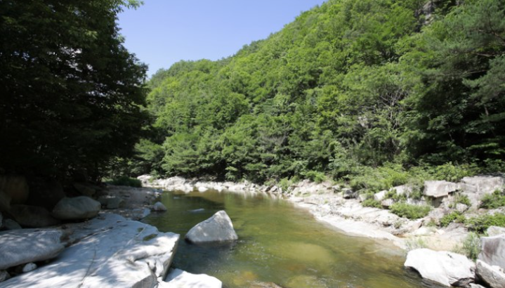 덕유산 삿갓 골샘 물줄기가 동쪽으로 흘러 내리면서 절경을 빚어내는 아름다운 계곡입니다.